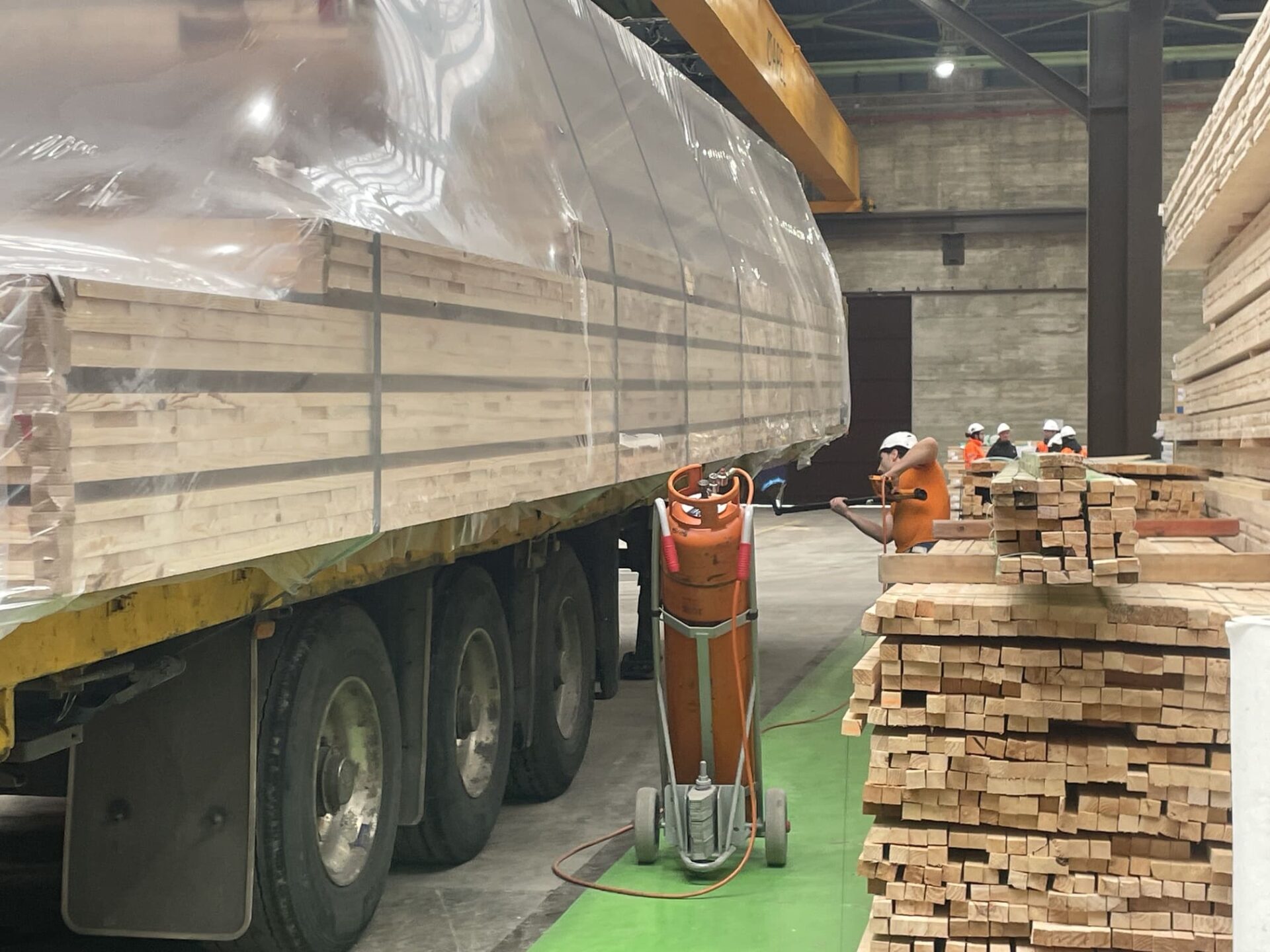 Nos han enseñado todo el proceso de fabricación de madera contralaminada (CLT) desde el secado de los tablones hasta la carga en los camiones.